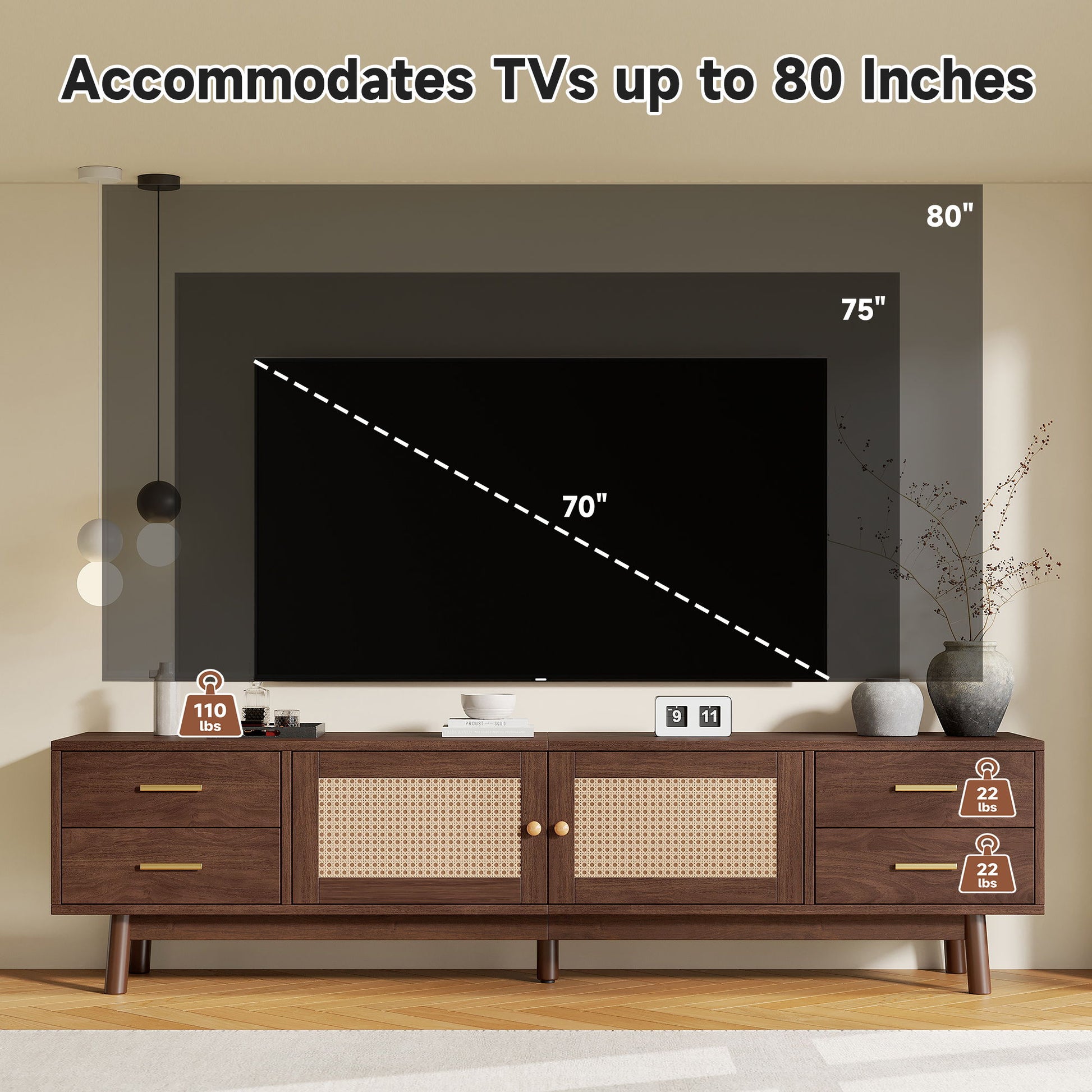 70" TV Stand With Doors For TVs Up To 80", Media Console With 4 Drawers & Cable Holes - Dark Brown