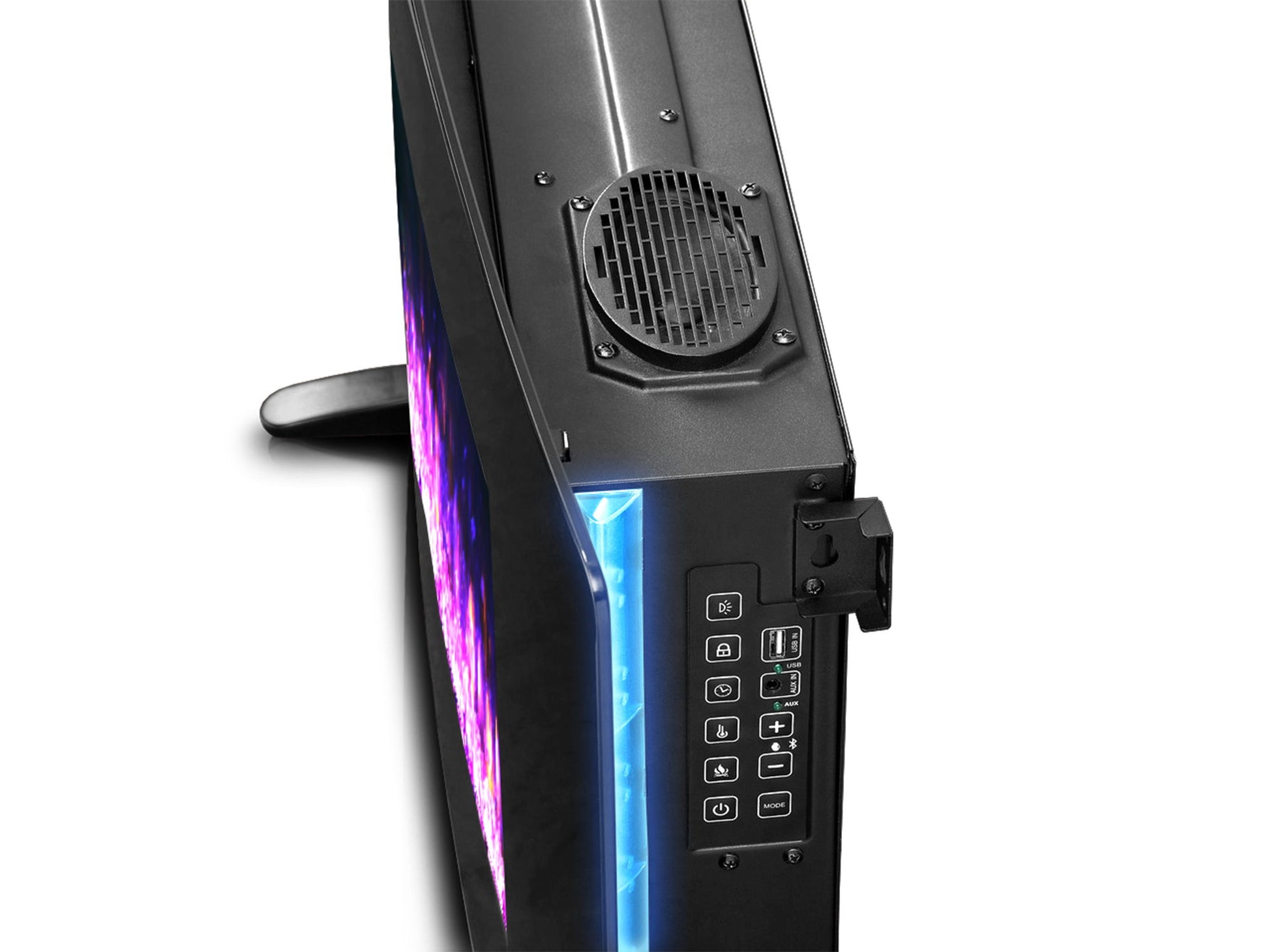 - Bluetooth Speaker System & Ambient Lighting Bluetooth Stereo speakers’ envelope you with sound. Inputs: USB drive, Aux in & Bluetooth connection. Multipule ambient lighting options adds comfort to your living room, bedroom, home, office, media room, kitchen or even your Airbnb. With the SoundFlame, it instantly creates gathering feel for your family or your guest. Heater Warm up to 400 sq ft. Safe and economical to operate 3 levels of heat setting. Works with or without heat. Technical Pro's LED fireplace is also economical and energy efficient to operate. It allows you to reduce central heating source and provide supplemental heat. The heater element is separate from the glass area so the glasses stay cool and safe to touch.