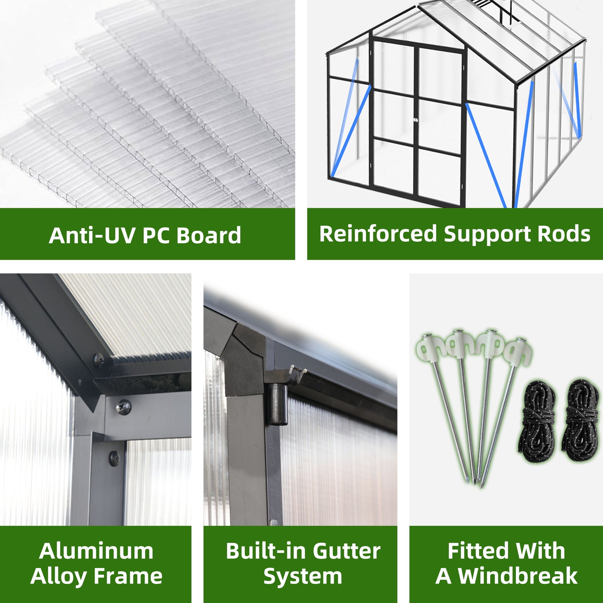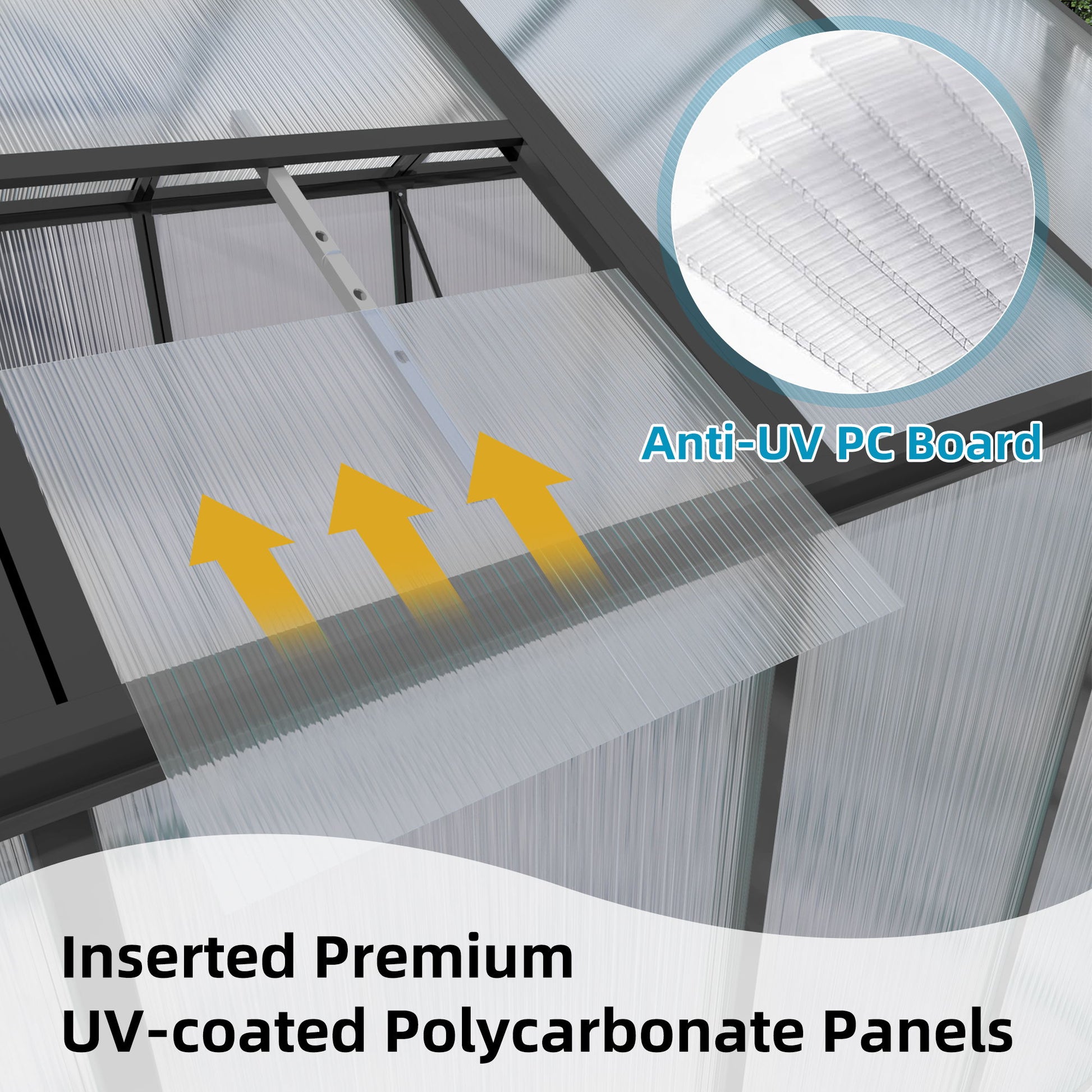 - Heavy-duty & Durable Frame: 4mm polycarbonate panels withstand extreme temperatures and block over 99.9% of harmful UV rays while allowing 70% light transmission for strong plant growth.