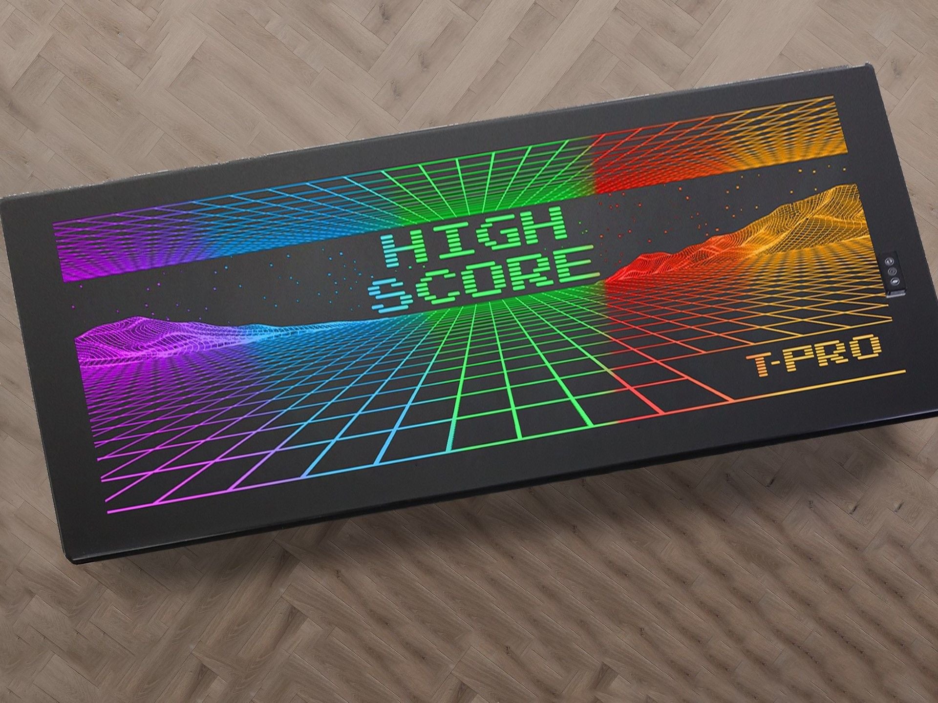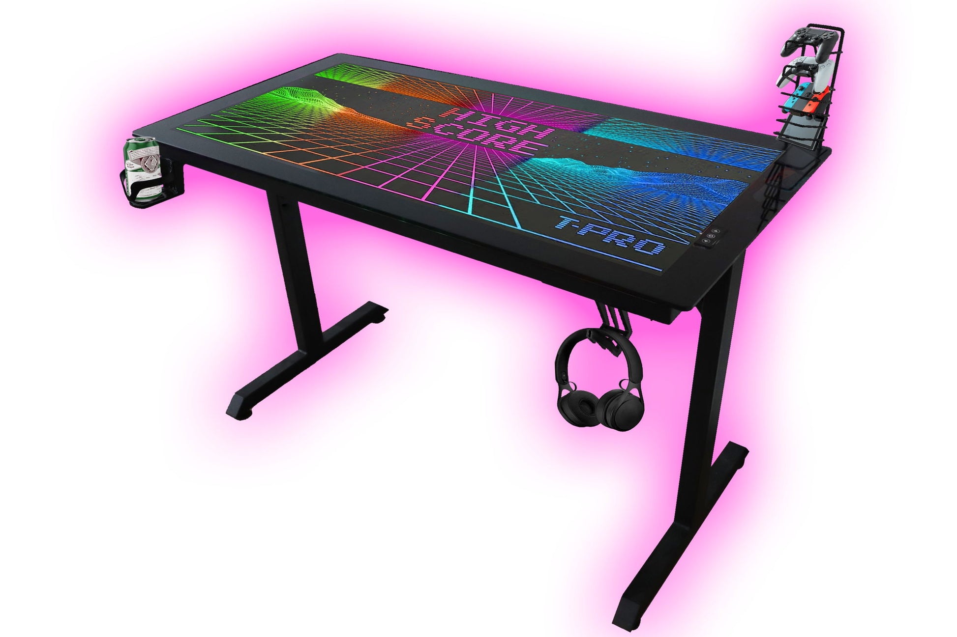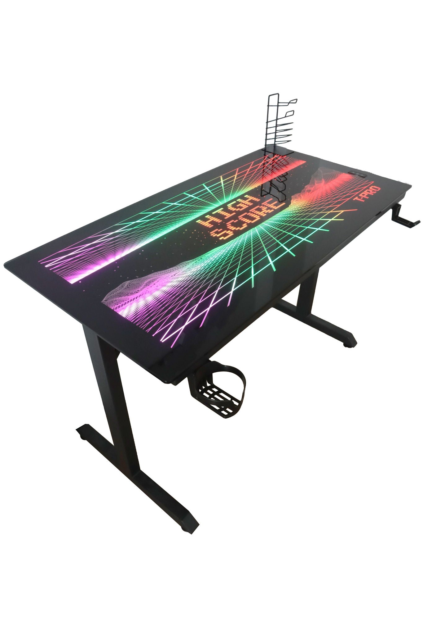 - Immerse yourself in the ultimate gaming experience with the TECHNICAL PRO xGAMEDESK. Designed with a Gamer in mind and a Gaming Design and modern features, this gaming desk is a perfect blend of style and functionality. Design: 80's Vintage Design: The desk features a grid-like design with a Tron-like feeling, showcasing an epic "HIGH SCORE" text in the middle of the desk. It is visually pleasing and perfect for gaming enthusiasts & is even sure to impress non-gamers as well. LED Glass Tabletop: The desk comes with a full RGB LED lighting system that allows you to customize the mood and lighting according to your preference.